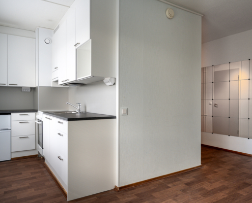 Ikkunallinen keittiönurkkaus uusittu juuri – mukavasti kaappitilaa ja työtasoa, sekä uusittu koneistus. Tilava huone ja sängylle oma paikka makuualkovissa. Säilytystilaa löytyy eteisestä. Lasitettu oma PARVEKE, josta avarat puistonäkymät!