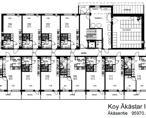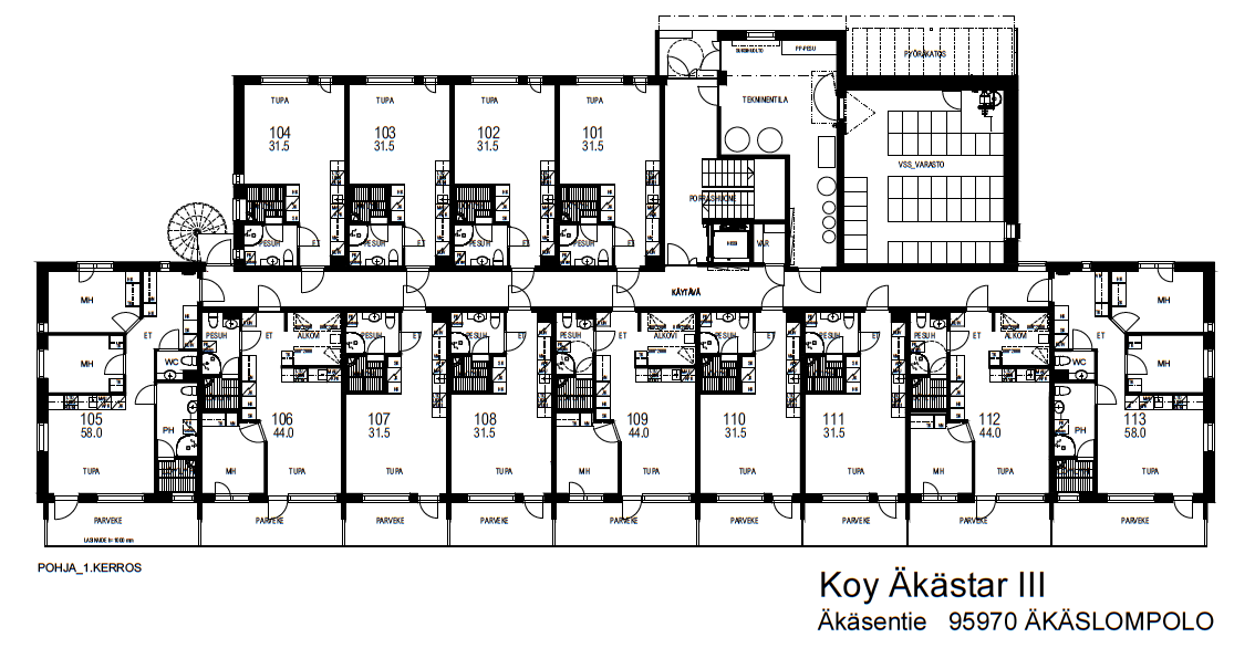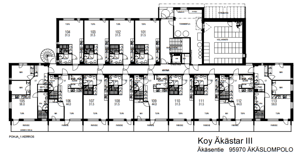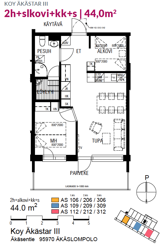 Tupakeittiö + mh + alkovi + sauna + parveke | Asunnot 106, 109, 112