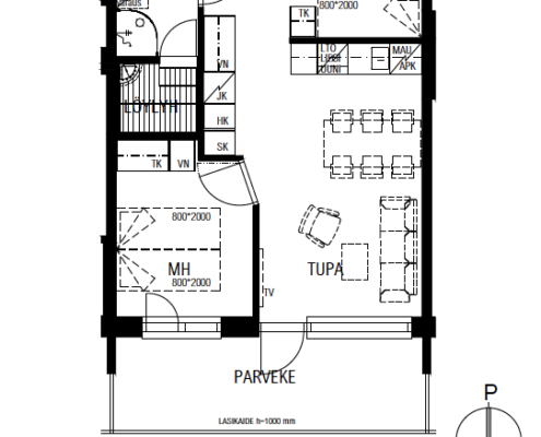 Tupakeittiö + mh + alkovi + sauna + parveke | Asunnot 206, 209