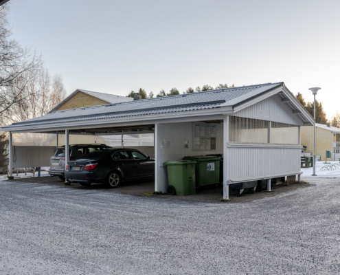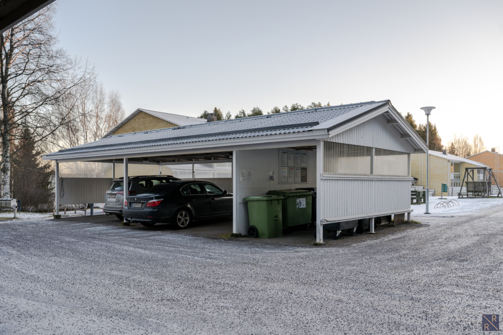 Asunnon yhteydessä on autokatospaikka, joka lisää asumismukavuutta ympäri vuoden.