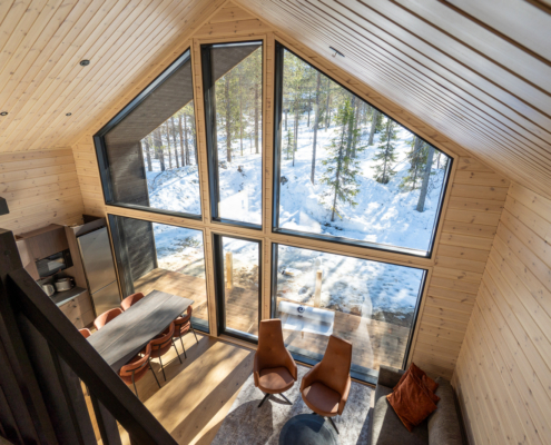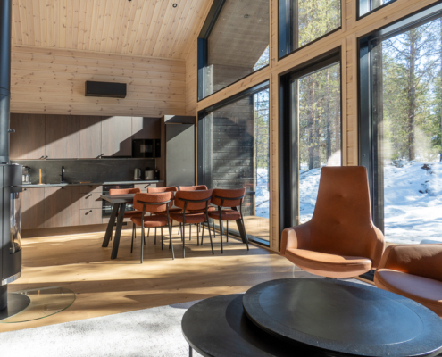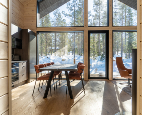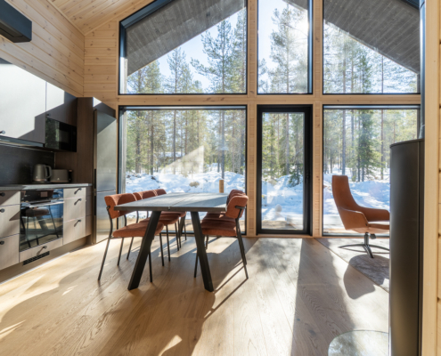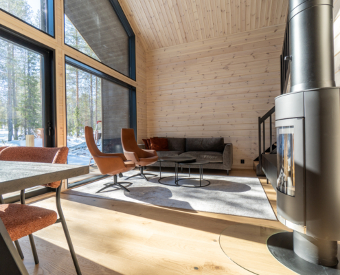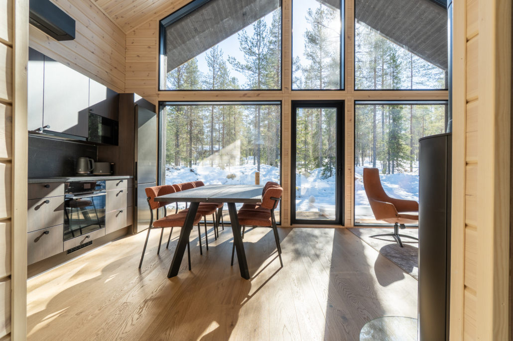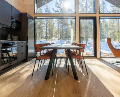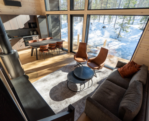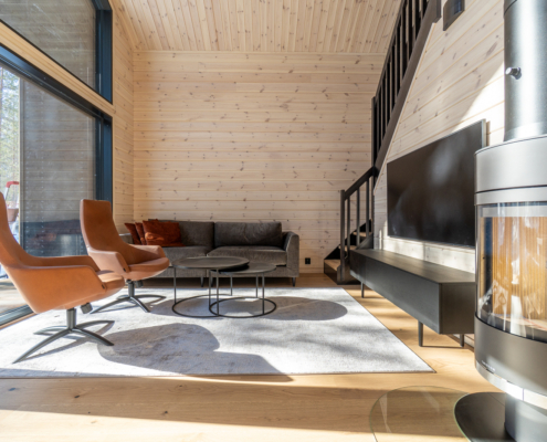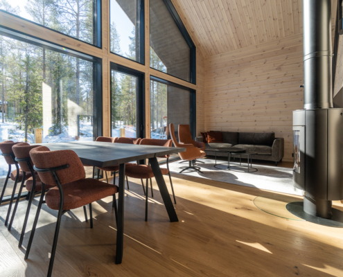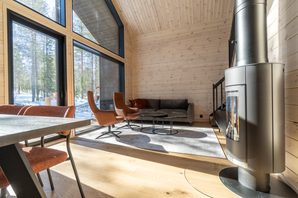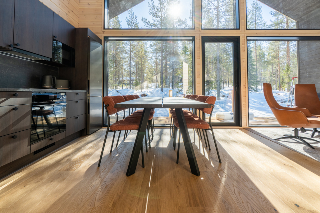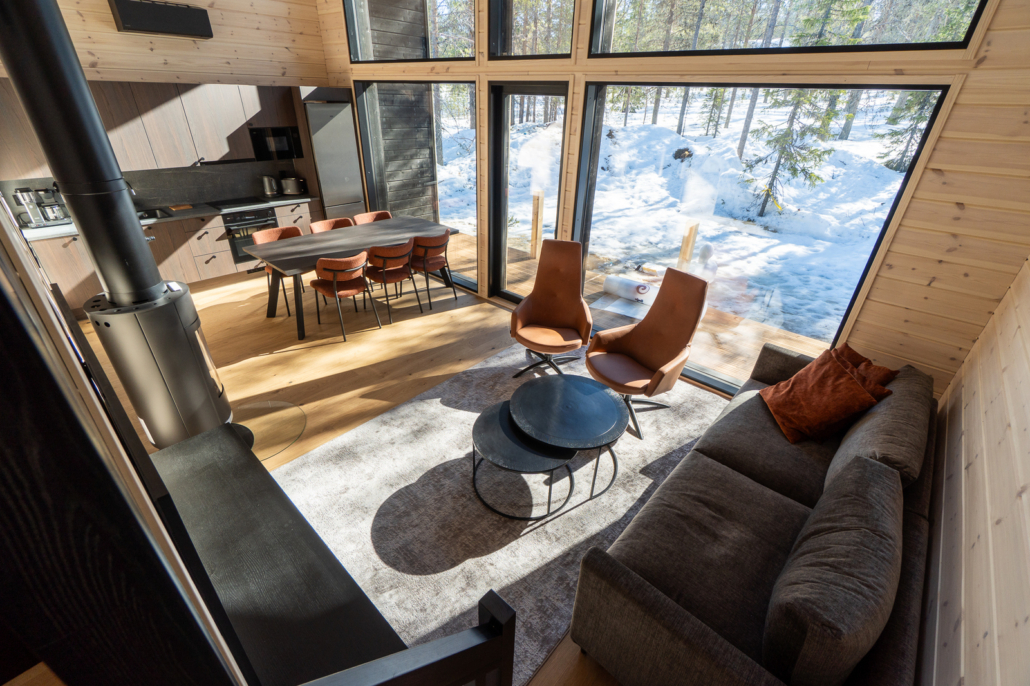 Tämä kokonaisuus edustaa modernia Lapin luksusta – harkittua designia, laadukkaita materiaaleja ja elämyksellistä asumista.