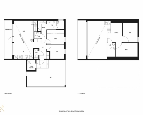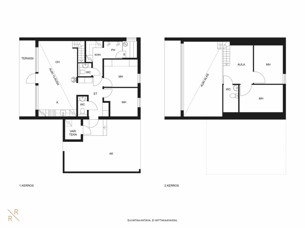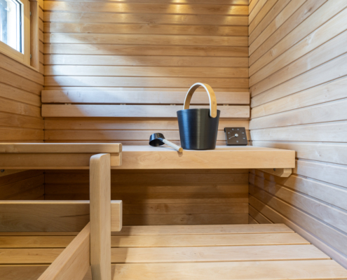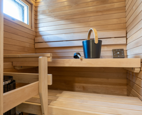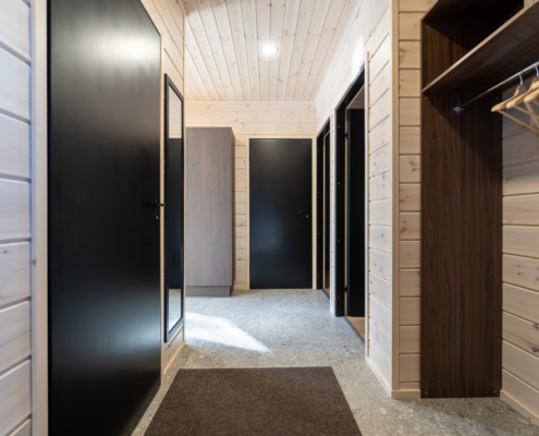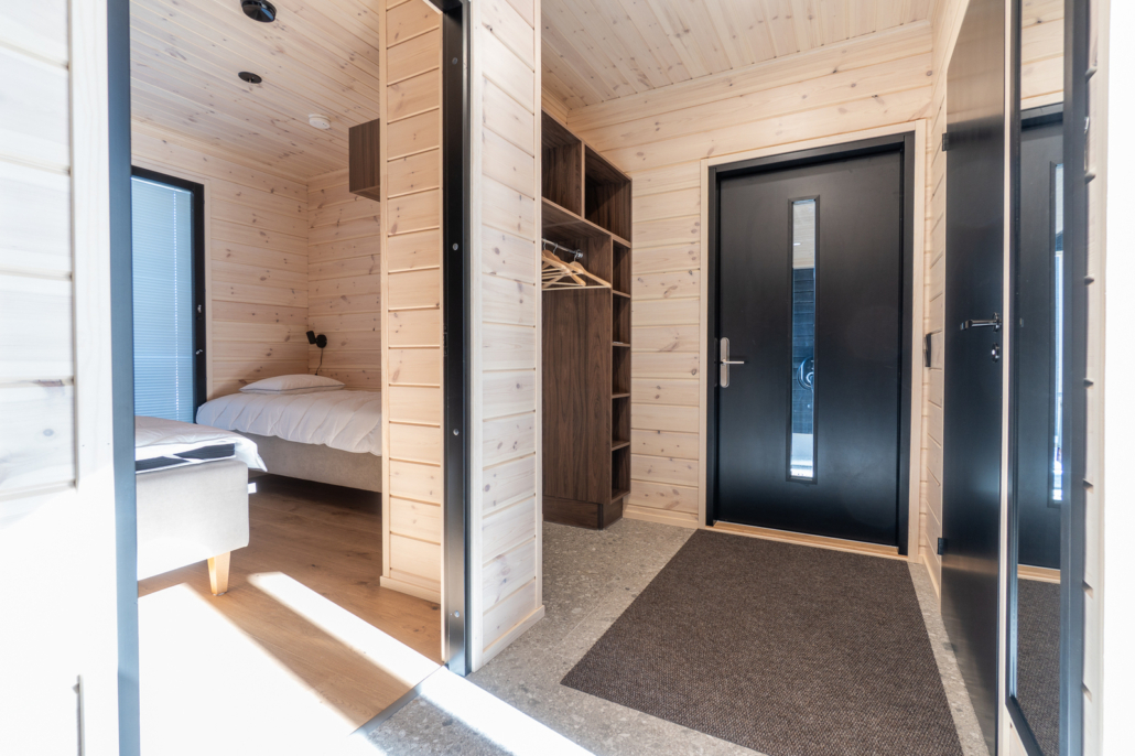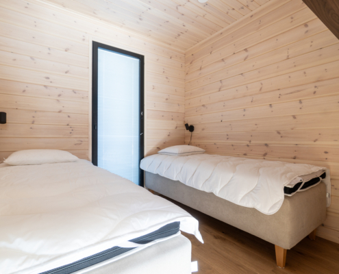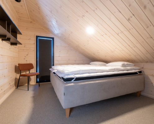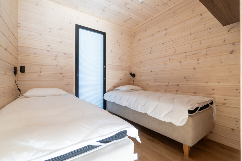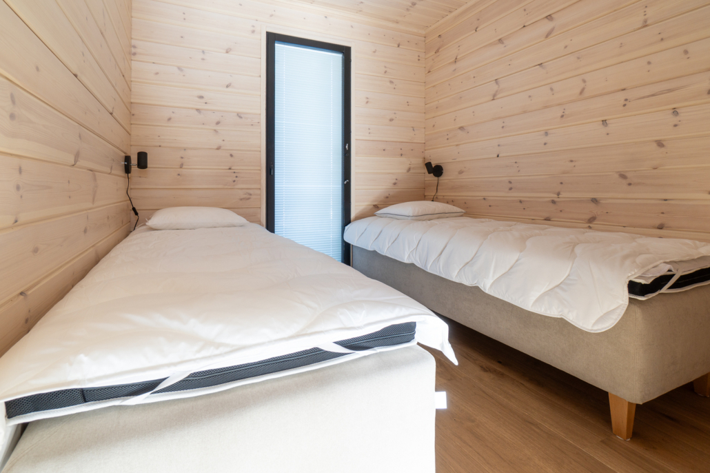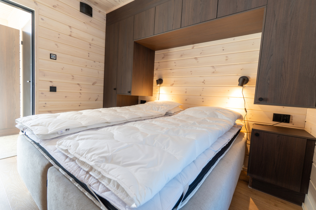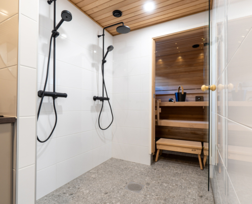 Tilat jakautuvat kahteen tasoon tarjoten erinomaiset puitteet isommallekin seurueelle. Parvikerroksessa sijaitsee kaksi makuuhuonetta sekä erillinen wc. Alakerrasta löytyvät lisäksi kaksi makuuhuonetta sekä upea saunaosasto, jossa kaksi sadesuihkua ja oma sauna kutsuvat rentoutumaan aktiivisen päivän jälkeen. Kodinhoitotila kuivauskaappeineen on suunniteltu erityisesti Lapin olosuhteisiin. Lisäksi alakerrassa on kaksi wc:tä.