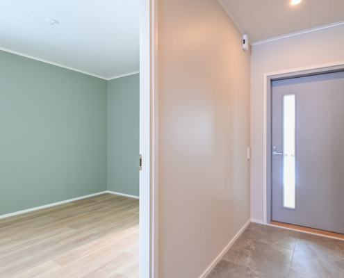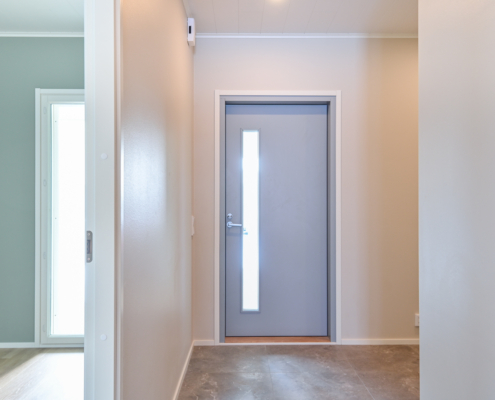 Kodinhoitohuoneessa paikka pyykkihuollolle ja säilytystilaa, samassa yhteydessä wc.