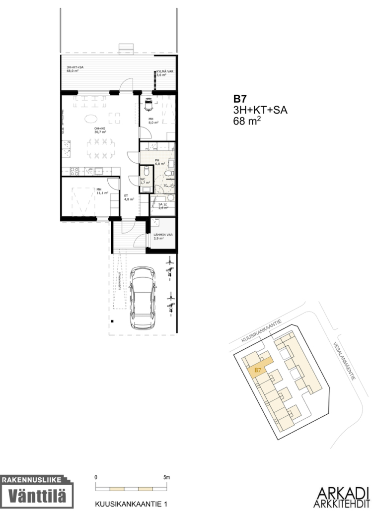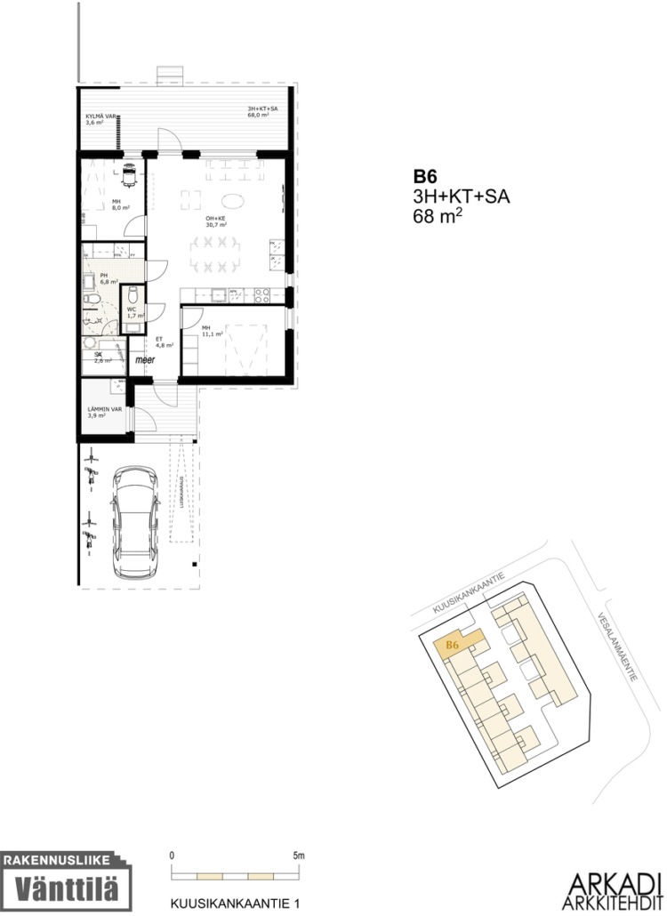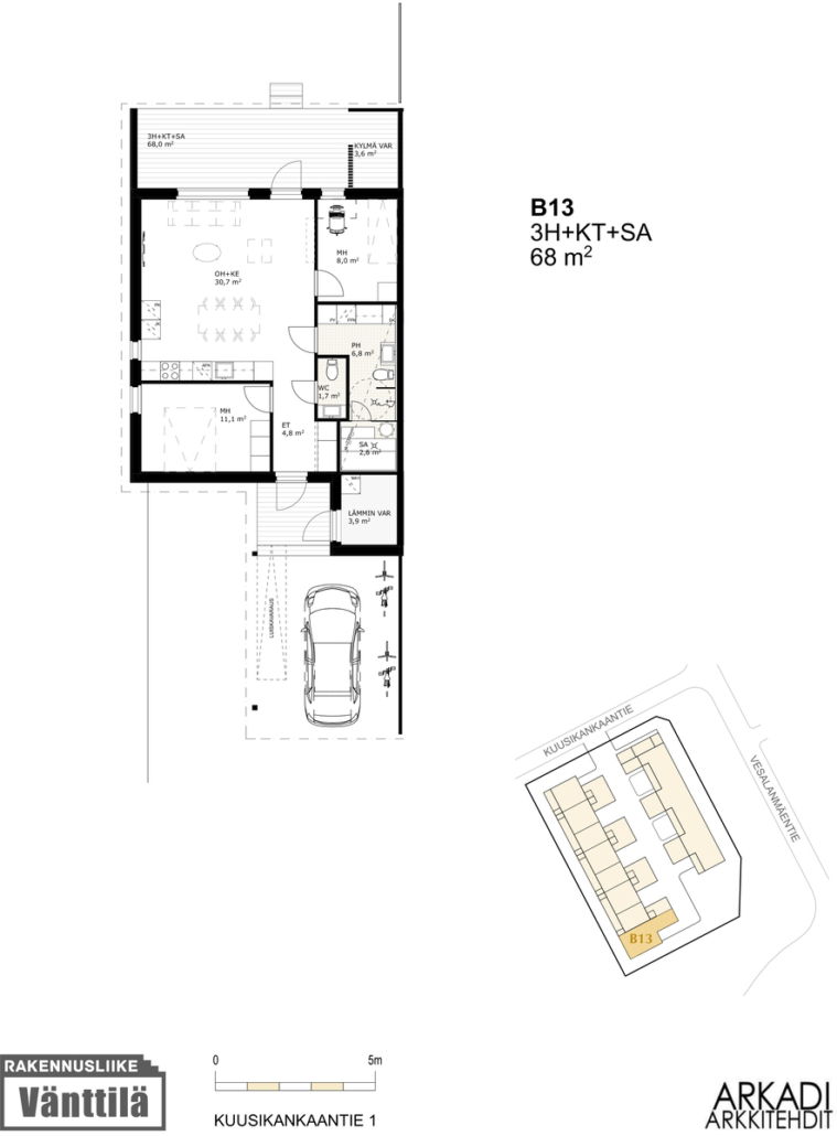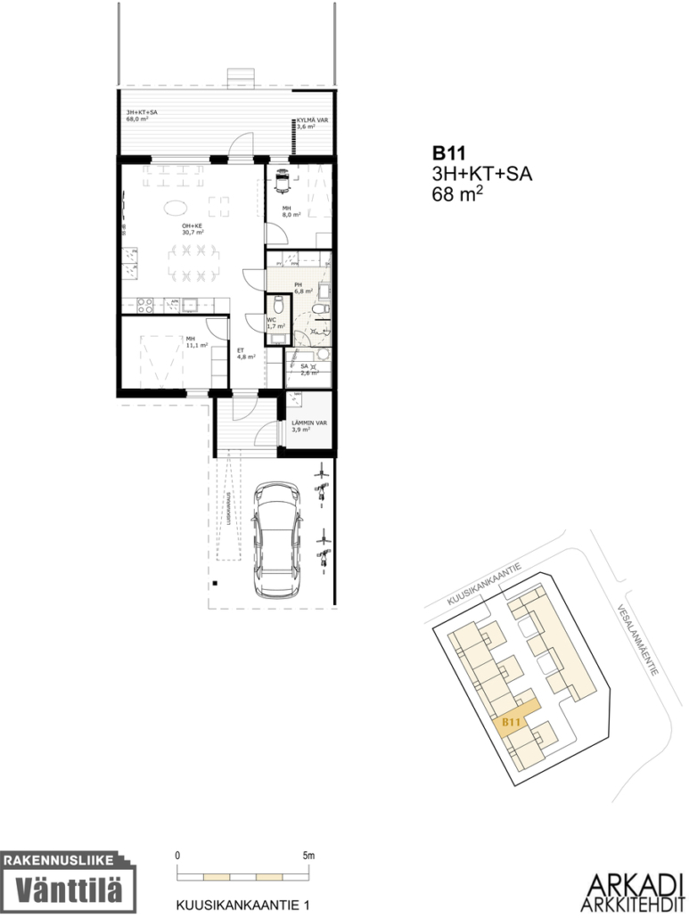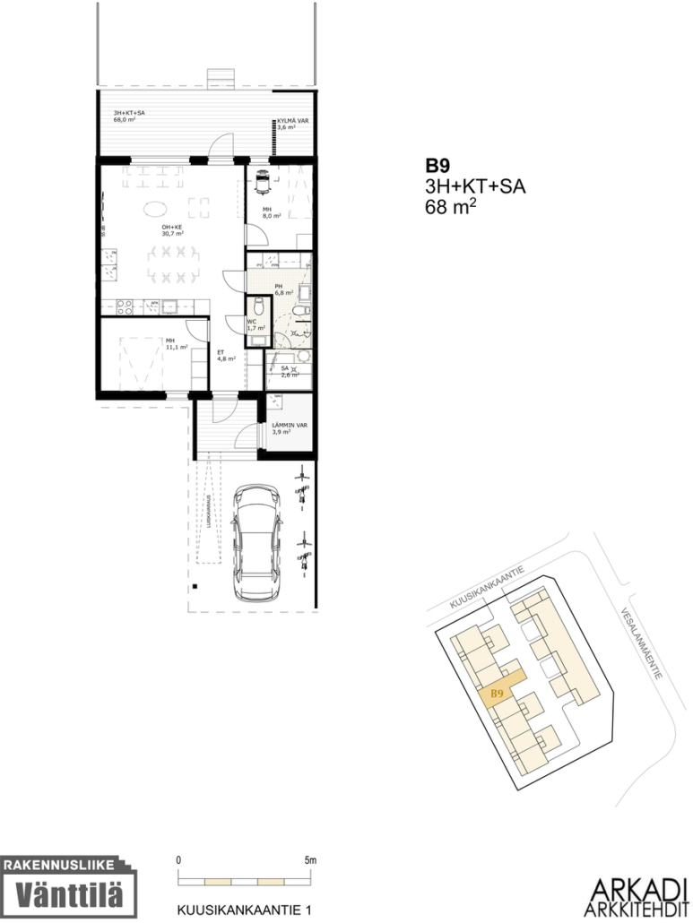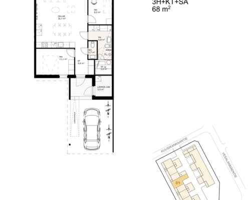 Ps. Myynnissä samalla pohjalla asunnot B6, B7, B9, B11, B13.