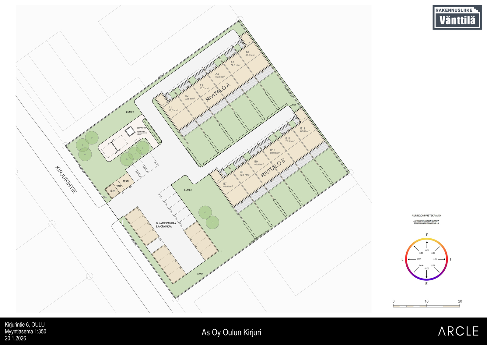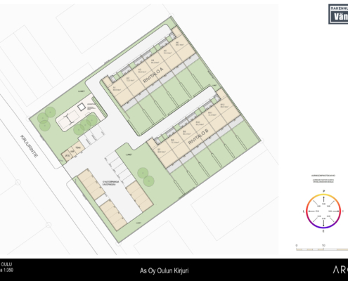 Asunto-osakeyhtiö Oulun Kirjuri rakentuu viihtyisälle ja kehittyvälle Hiukkavaaran alueelle. Tämä moderni, 12 kodin rivitalokokonaisuus tarjoaa tasapainoista asumista luonnon ja palveluiden läheisyydessä. Jokaisessa asunnossa on oma viheraidattu piha terasseineen, kaukolämpöön liitetty vesikiertoinen lattialämmitys sekä viilentävä ilmalämpöpumppu. Katettu autokatospaikka sähköauton latausvarauksella sisältyy hintaan.