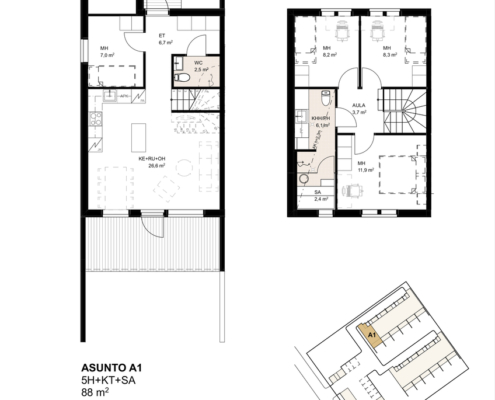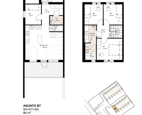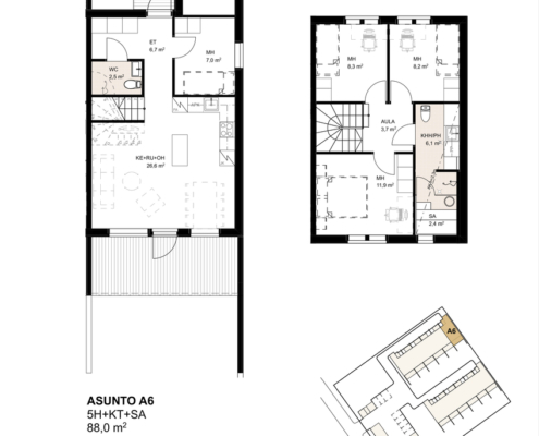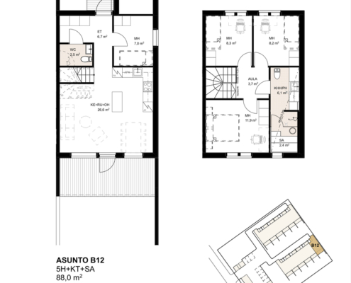 Samalla pohjalla PÄÄTYasunnot A1, B7 ja A6, B12.