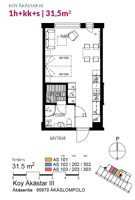 Lomahuoneisto, 31.5m2, Tupak+s, Äkäsentie 3 As.102 , 95970 Kolari, Ylläs